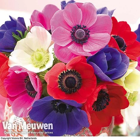 Anemone de Caen – Silky, long-lasting blooms with delicately cupped petals in a vibrant mix of bold colours.